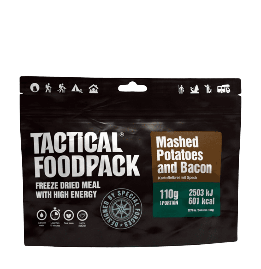 Hungrig? Dann ist dieses leckere Gericht von Tactical Foodpack genau das Richtige. Durch eine spezielle Gefriertrocknung hält dieses Foodpack bis zu 8 Jahren. Zubereitet wird es ganz einfach mit heißem Wasser. Sollte keine Möglichkeit zum Erwärmen des Wassers bestehen, kann das Gericht auch mit kaltem Wasser zubereitet werden. Wir wünschen einen guten Appetit!