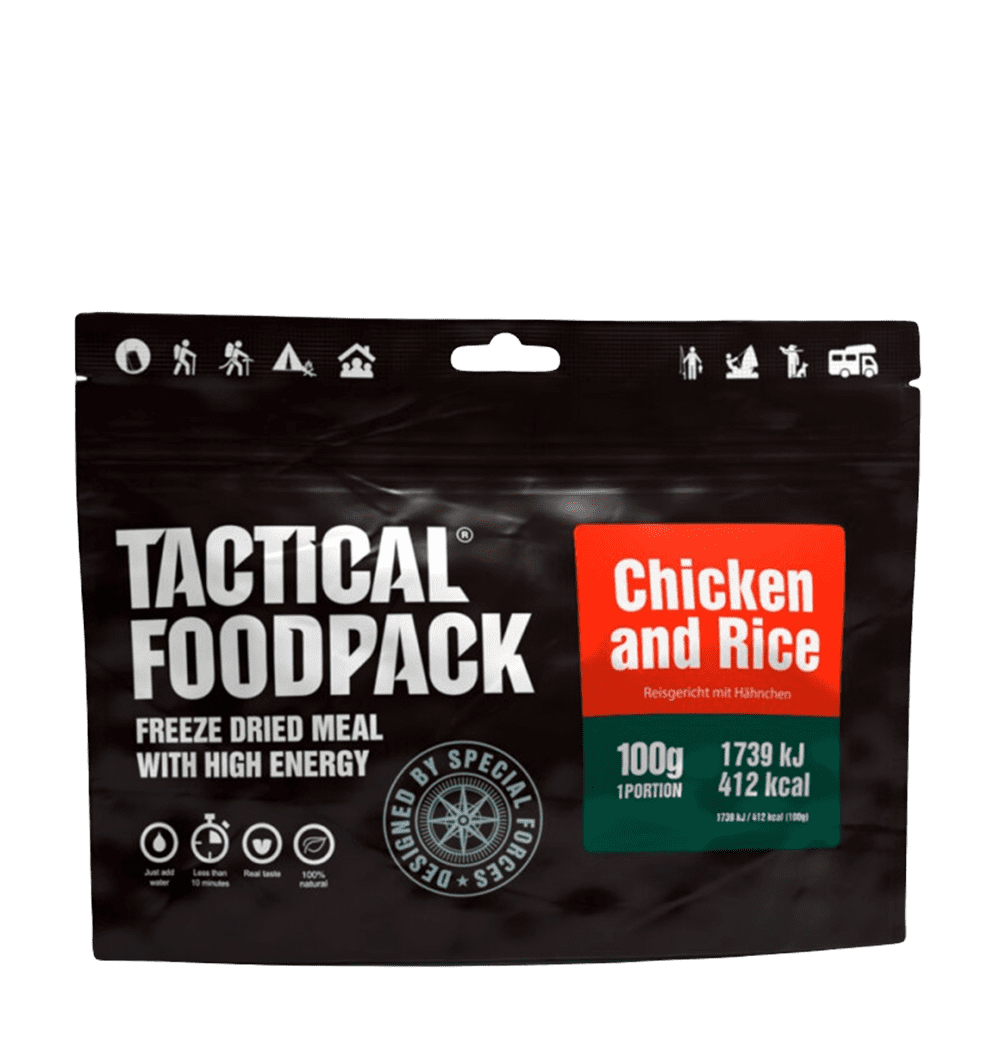 Die Gerichte von Tactical Foodpack sind genau das Richtige, um auf einem anstrengenden Outdoor-Abenteuer wieder zu Kräften zu kommen. Durch eine spezielle Gefriertrocknung hält dieses Foodpack bis zu 8 Jahren. Zubereitet wird es ganz einfach mit heißem Wasser. Sollte keine Möglichkeit bestehen das Wasser zu erwärmen, kann das Gericht auch mit kaltem Wasser zubereitet werden. Wir wünschen einen guten Appetit!